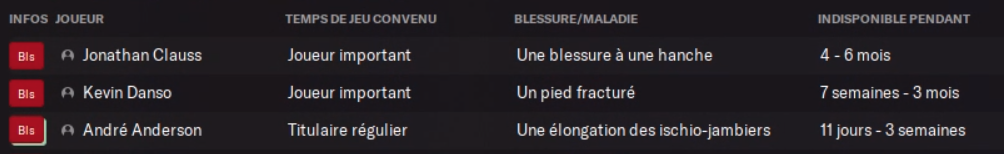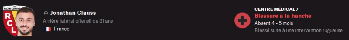 Une jolie blessure à l’entraînement pour Clauss, qui va nous obliger à compter encore plus sur les jeunes au poste de latéral droit. Le constat est assez frappant cette année, beaucoup plus de lourdes blessures que l’an dernier :