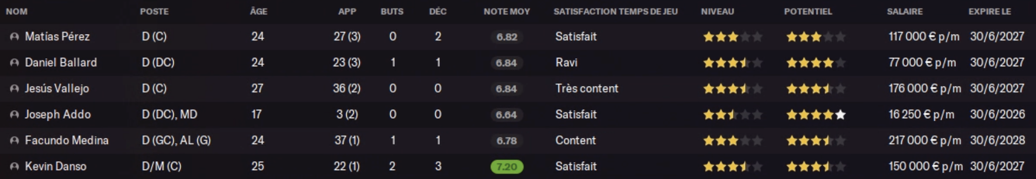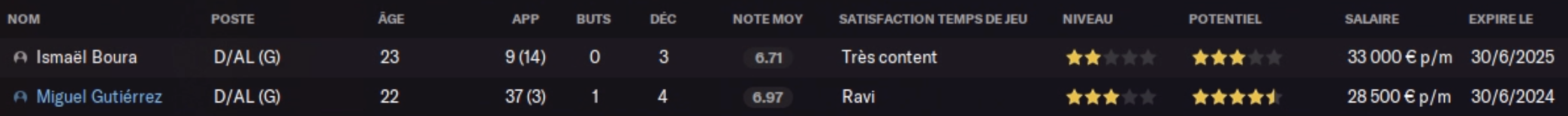 - un latéral gauche titulaire, et un remplaçant si une occasion se présente