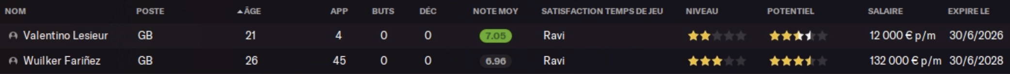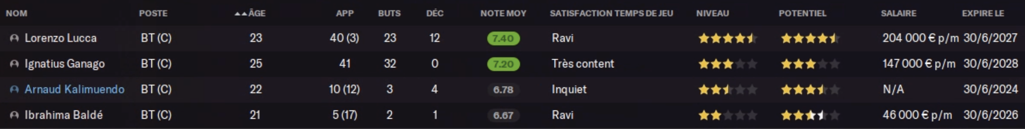 Autre « erreur » de ma part : démarrer la saison avec mes deux jeunes en remplaçant en attaque. Ils ont du mal à marquer, ils sont un peu légers pour la L1. Je pense qu’il faudra une recrue et en prêter un.