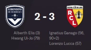 INCROYABLE PERFORMANCE ! Nous écrasons les Gunners chez nous, dans un match pourtant très défensif. Ganago a eu trois contres pour se montrer et a mis au fond les 3 fois ! Nous réalisons un véritable exploit dans un Bollaert en feu. Quel pâle équipe d’Arsenal mais quel résultat pour nous !