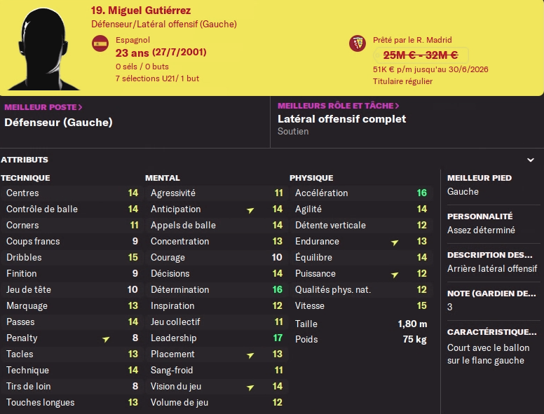 Miguel Gutiérrez, 23 ans, Espagnol, Real Madrid (prêt)