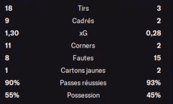 Un premier match un peu décevant où nous n’avons pas du tout existé. Je suis déçu parce qu’on a même pas essayé. Un seul tir cadré, un but, au moins nous avons été efficaces !