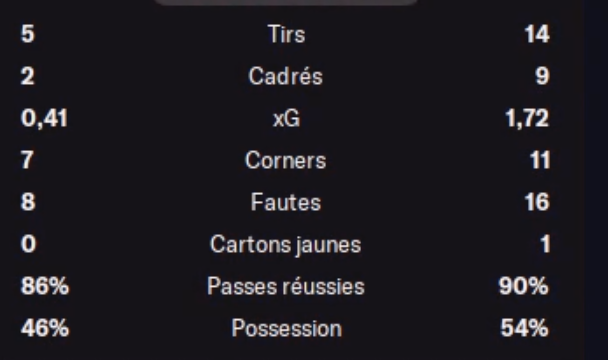 Premiers points perdus contre Marseille. Pas honteux ceci-dit. Nous avons plutôt dominé le match mais avons été très maladroits. C’est un peu l’histoire de notre saison. Seulement 3 tirs cadrés c’est assez triste. Au moins on gagne des points contre une équipe de tête.
