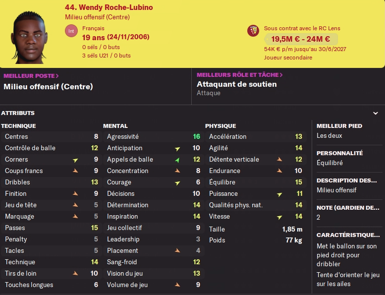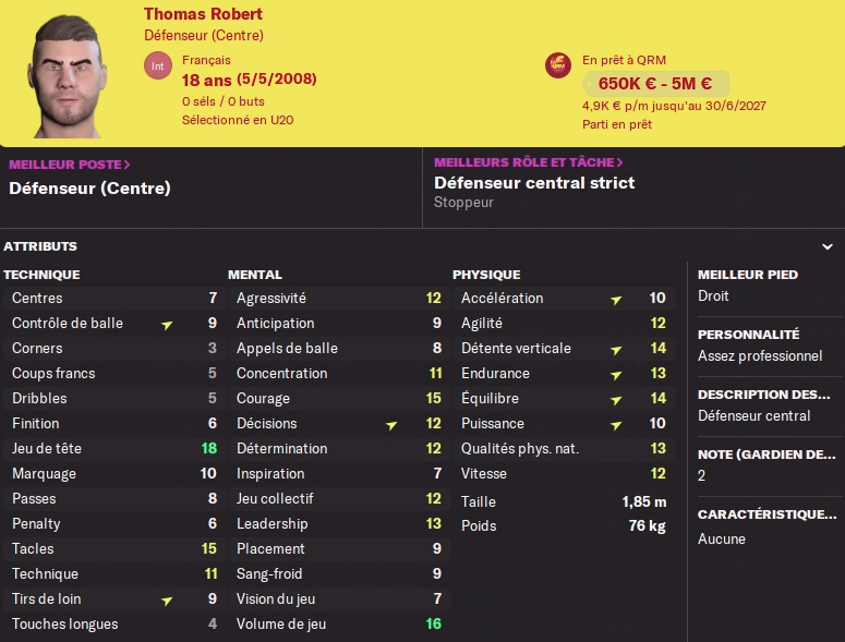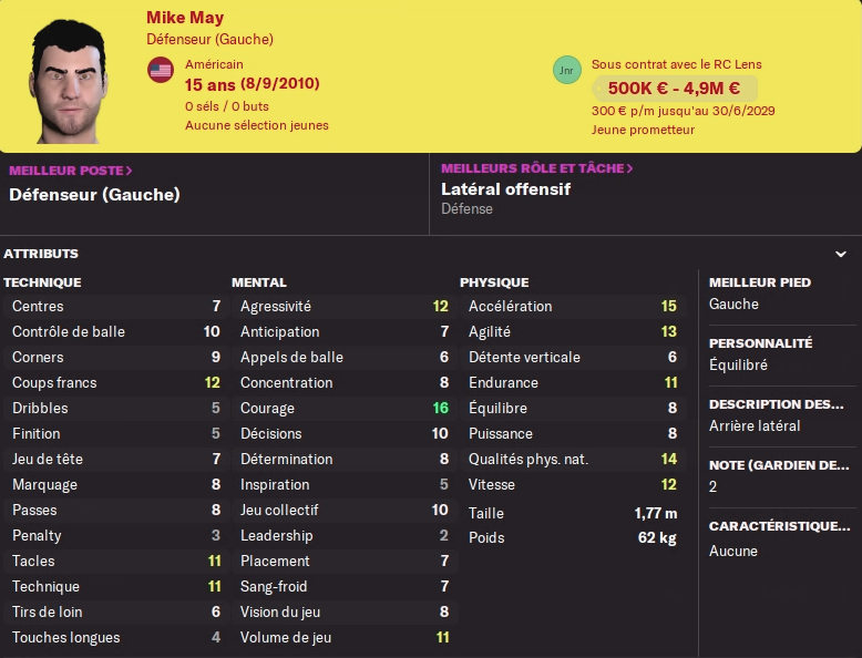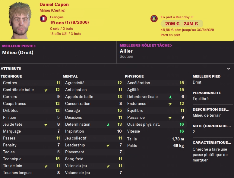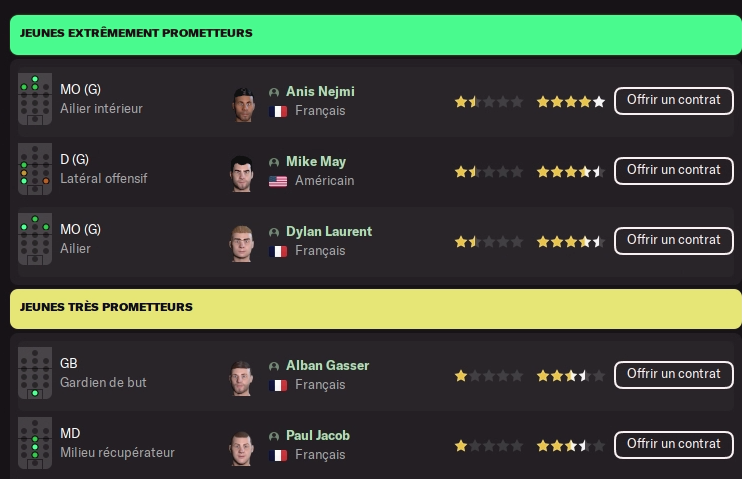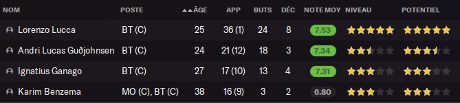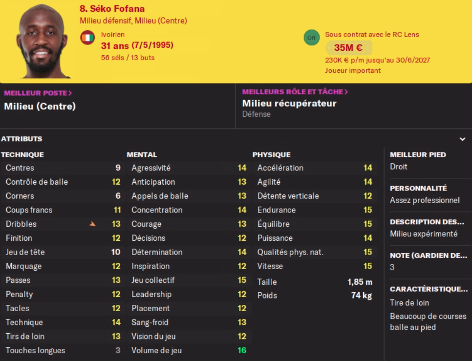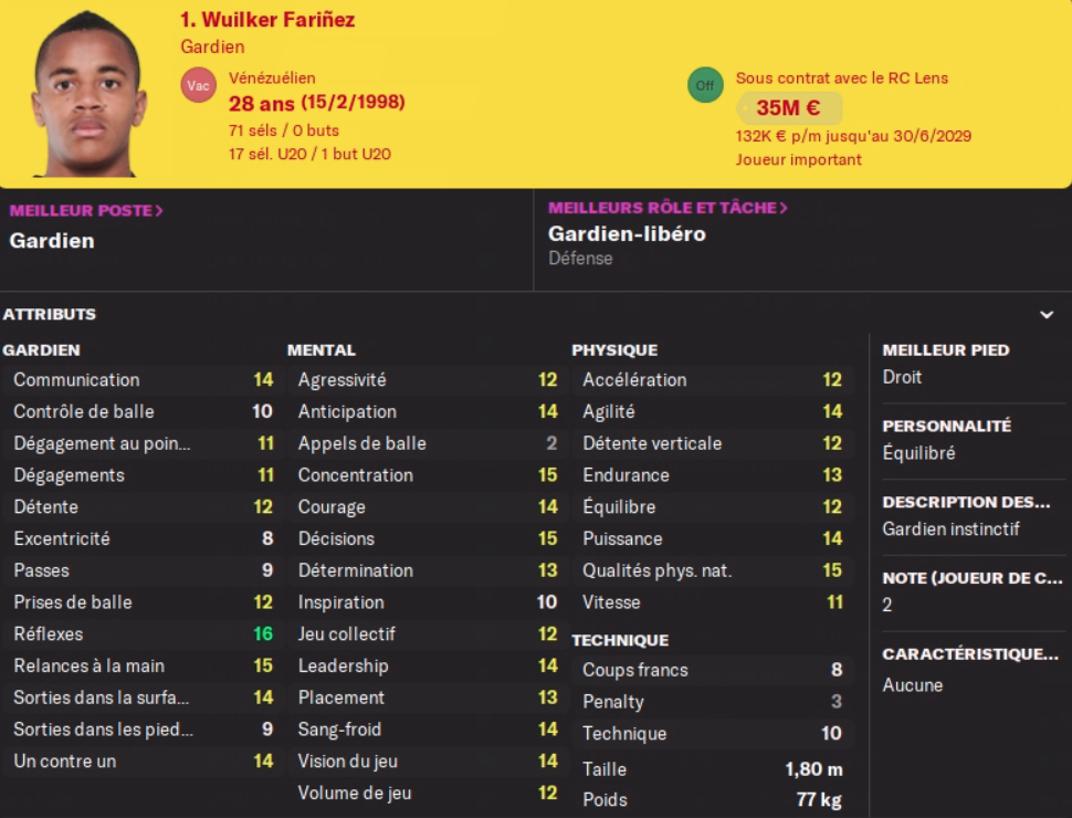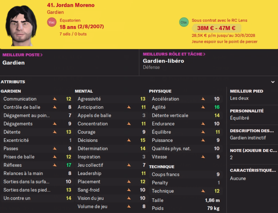 Acheté 7.5M€ l’an dernier, il part pour le club phocéen pour 13.5M€ au moins je fais une plus value… Pas de remplacement prévu, j’avais un DG en prêt pour la saison, mais il faudra à nouveau trouver quelqu’un pour un transfert définitif au club, aucun jeune n’est prometteur à ce poste…