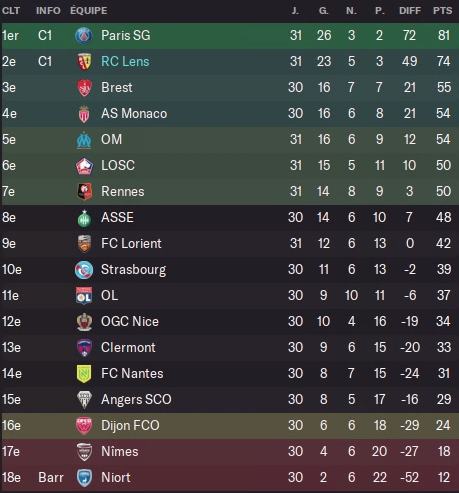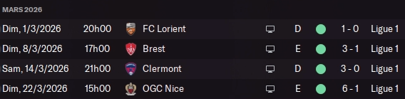 BOOOM un bon petit mois ! Deux clean sheets, une victoire facile contre Bordeaux.Une victoire facile contre Strasbourg. Un match serré mais sérieux contre Angers, et surtout un feu d’artifice en fin de mois avec l’atomisation de Niort ! Les chamois ne sont pas venus pour rien chez nous. Je menais déjà 5-0 quand ils ont eu la bonne idée de se prendre un rouge.