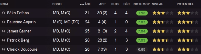 Mais avant ça, ouverture d’une fenêtre de mercato. Je n’ai pas prévu d’acheter spécialement, mais quelques départs vont être prévus. En effet, certains joueurs sont mécontents de leur temps de jeu, ou n’apportent que peu par rapport à leur salaire.