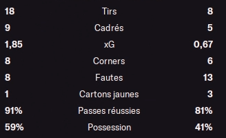 Retour à ce qui nous intéresse le plus (après l’argent) : le football. Un mois un peu plus cool, un effectif un peu mieux équilibré, des ajustements tactiques qui commencent à porter leurs fruits… qu’est-ce que ça donne niveau résultats ?