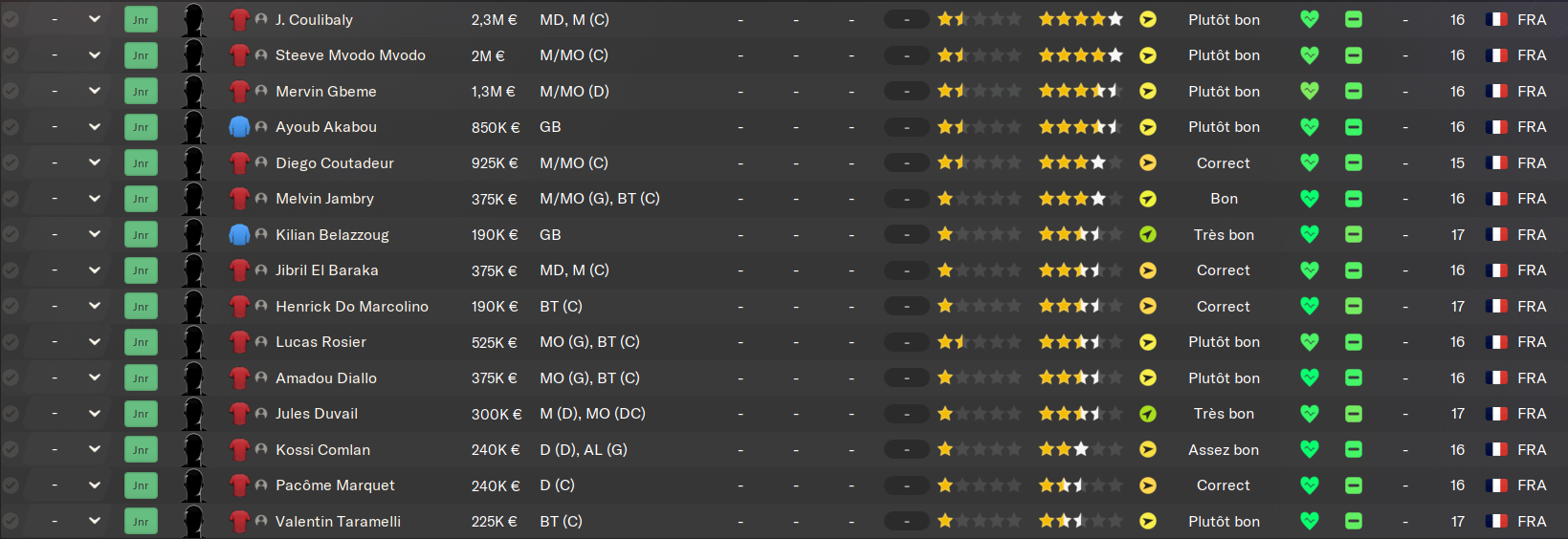 Là par contre y’a du très très lourd ! Y’a des sacrés potentiels, et y’en a sûrement qui vont venir peupler l’équipe 2. Il va falloir surveiller pour plus tard.