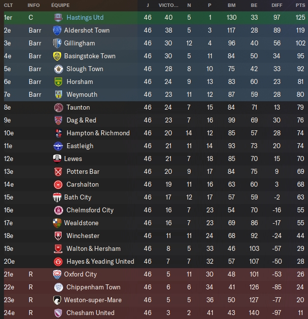 | Matchs nuls | 12 | Diff. de buts | + 70 | Relégations | 0 |