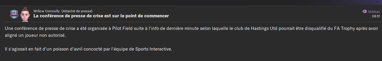 Aldershot fut en effet un adversaire qui n’a rien lâché jusqu’au bout même si ma seule défaite contre eux, j’avais 9 points d’avance et j’ai ligné mon équipe B pour privilégier le match de Trophée FA, trois jours plus tard.