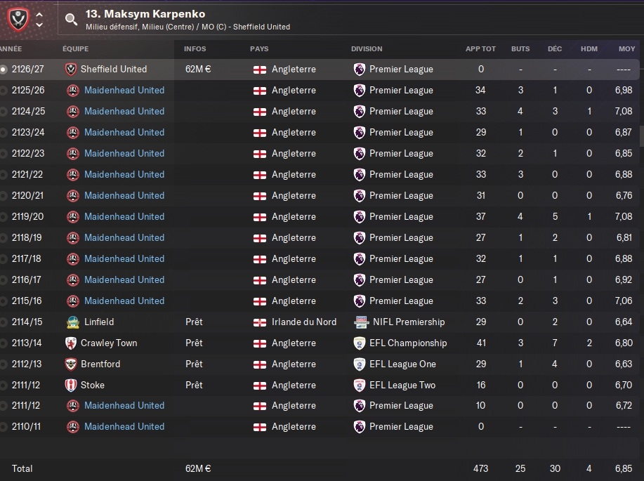- Possibilité de recruter uniquement les joueurs formés au sein du centre de formation de Maidenhead Utd.