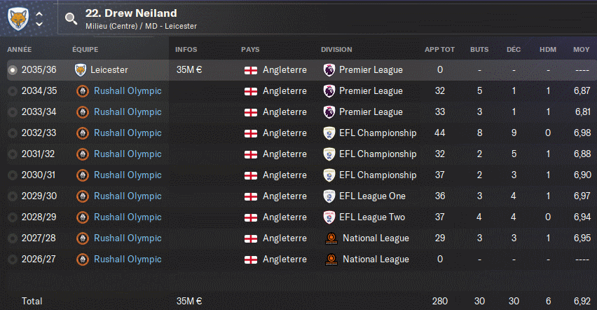 | Matchs gagnés | 865 | Buts encaissés | 1362 | Promotions | 5 |