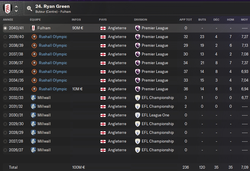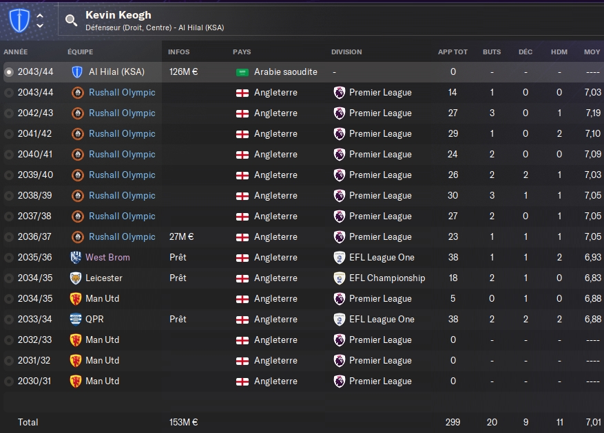 | Matchs joués | 1361 | Buts marqués | 3018 | Titres championnat | 9 |