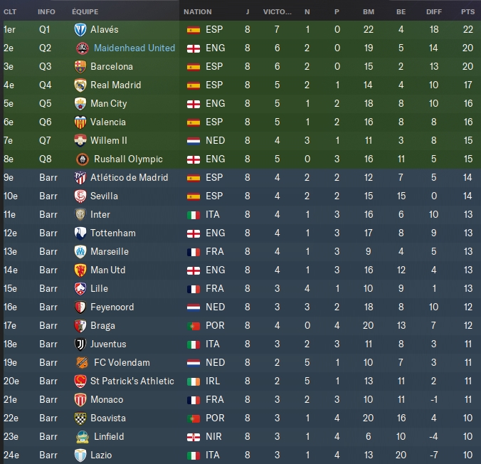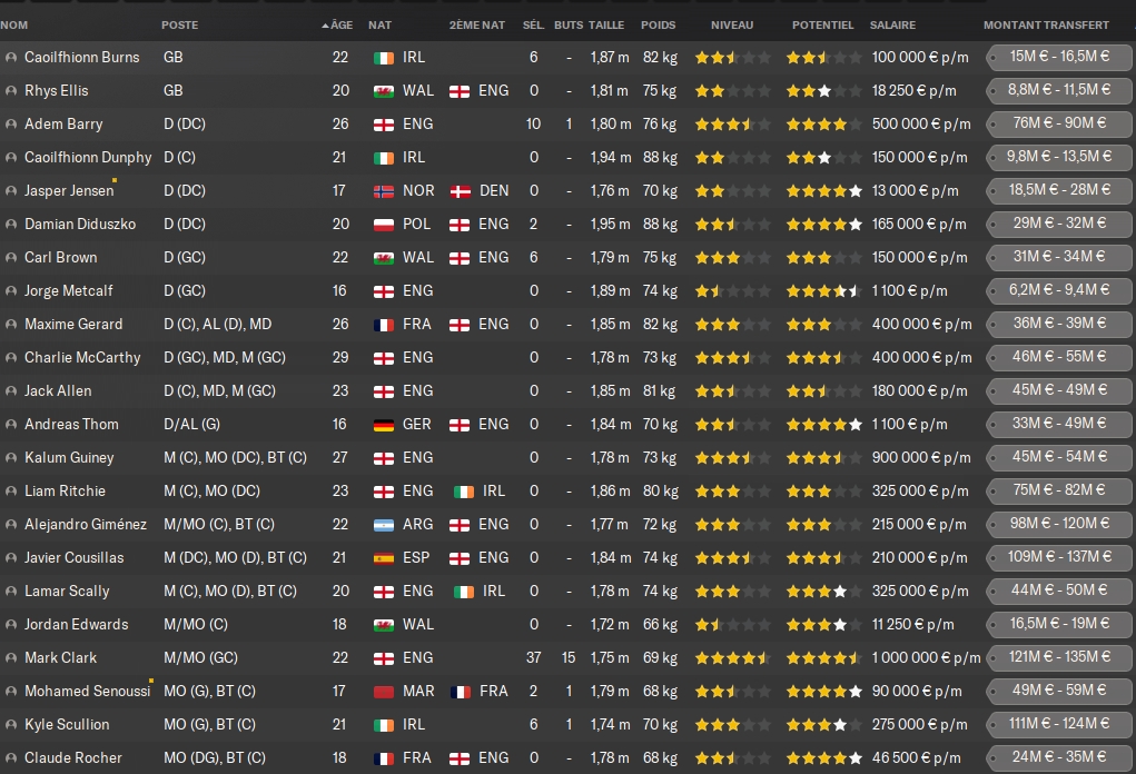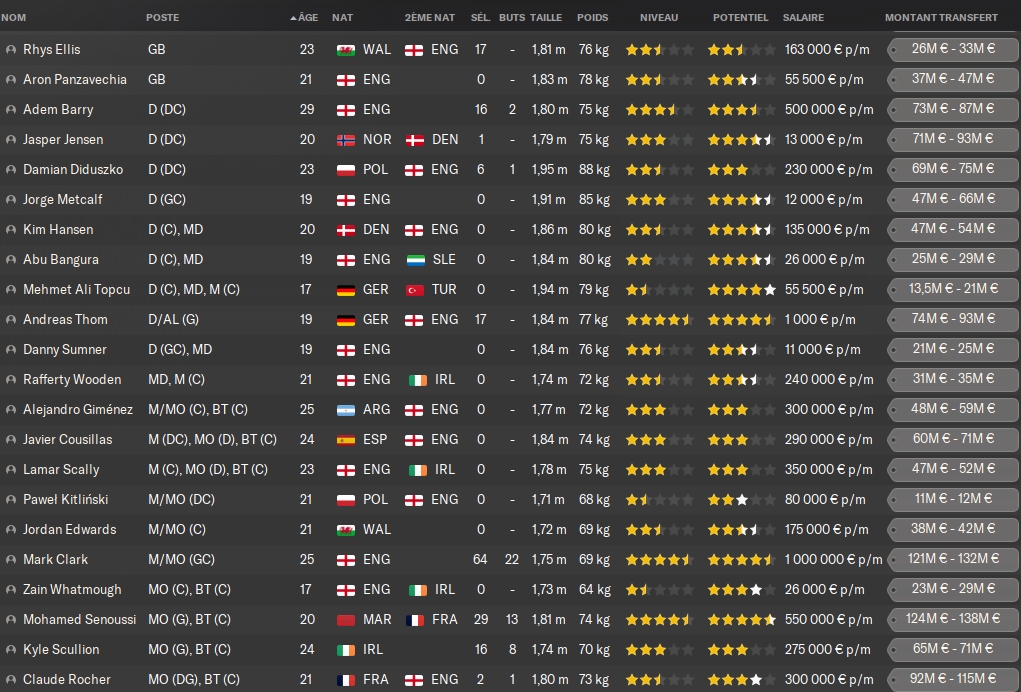 DC | Bradford City (D2) | 22 M€ | 10 | 313 | 29 | 7 | 7.01 |