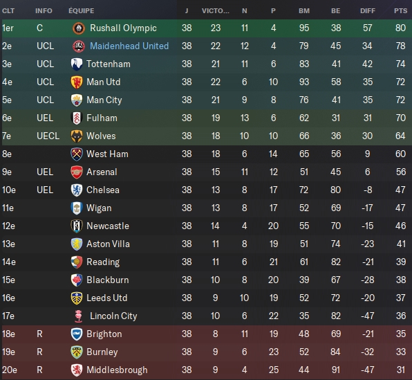 | Matchs nuls | 286 | Différence de buts | + 994 | Relégations | 0 |