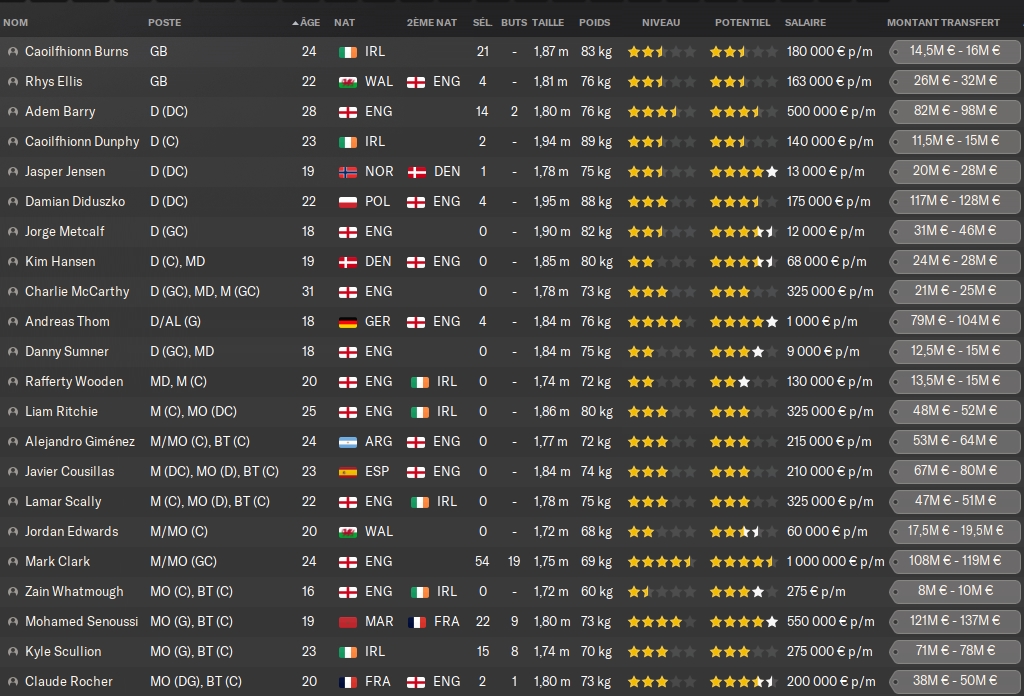 | 22 M€ | Bradford City | L. Fullerton (DC) |