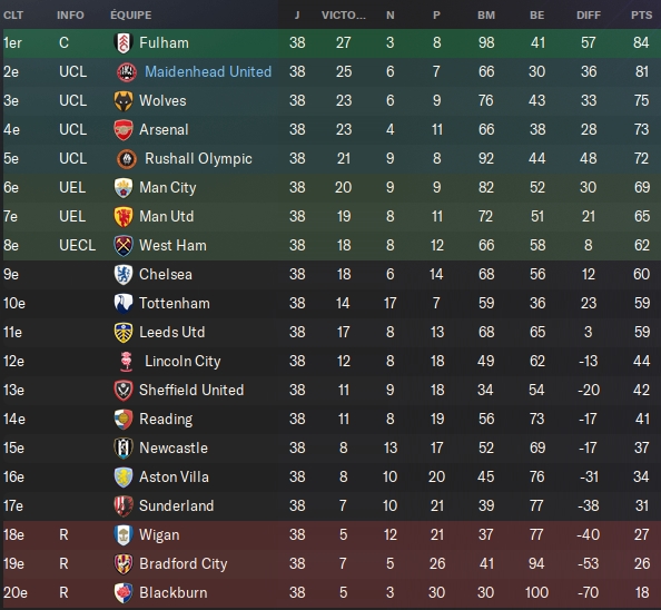 | Matchs nuls | 811 | Différence de buts | + 6087 | Relégations | 0 |