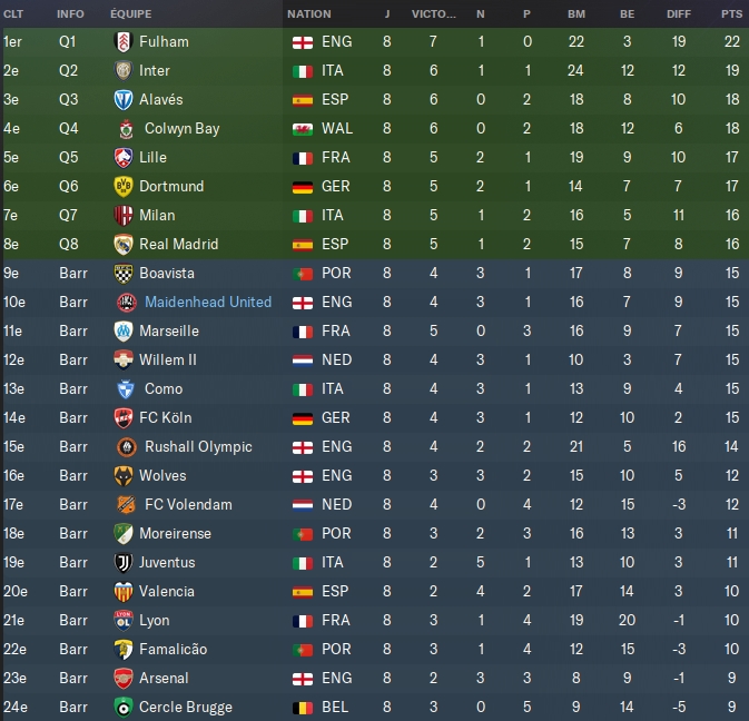 | Prévisions médias | 9ème (sur 20) | ▲ |