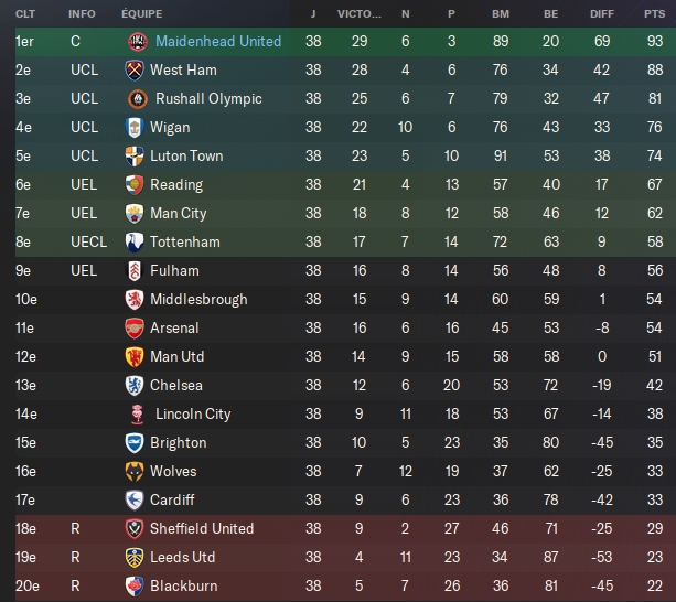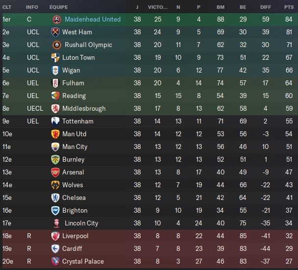 Titre en championnat à la dernière journée puisque Wigan qui m’a causé pas mal de difficultés a été accroché lors de son dernier match.