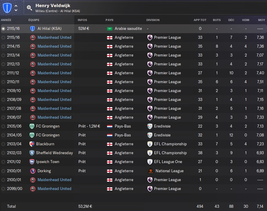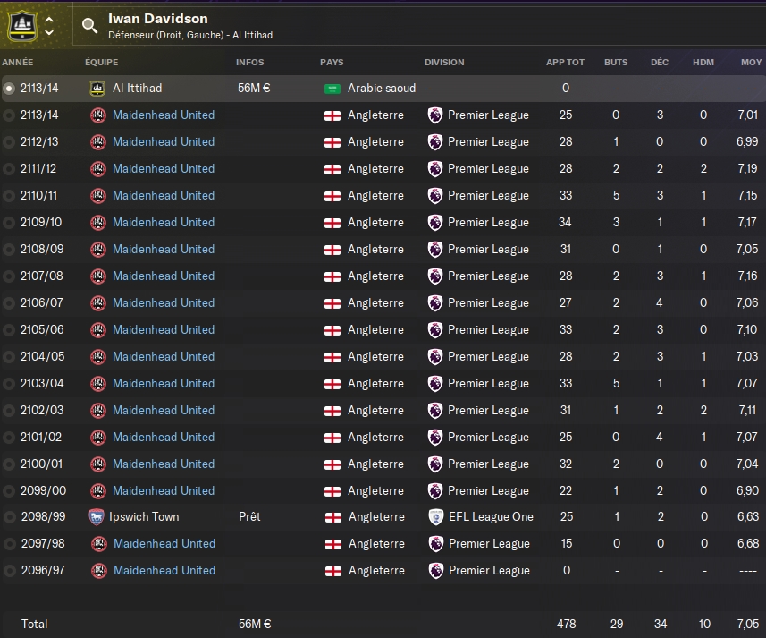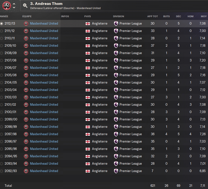 | Matchs gagnés | 1824 | Buts encaissés | 2449 | Promotions | 5 |