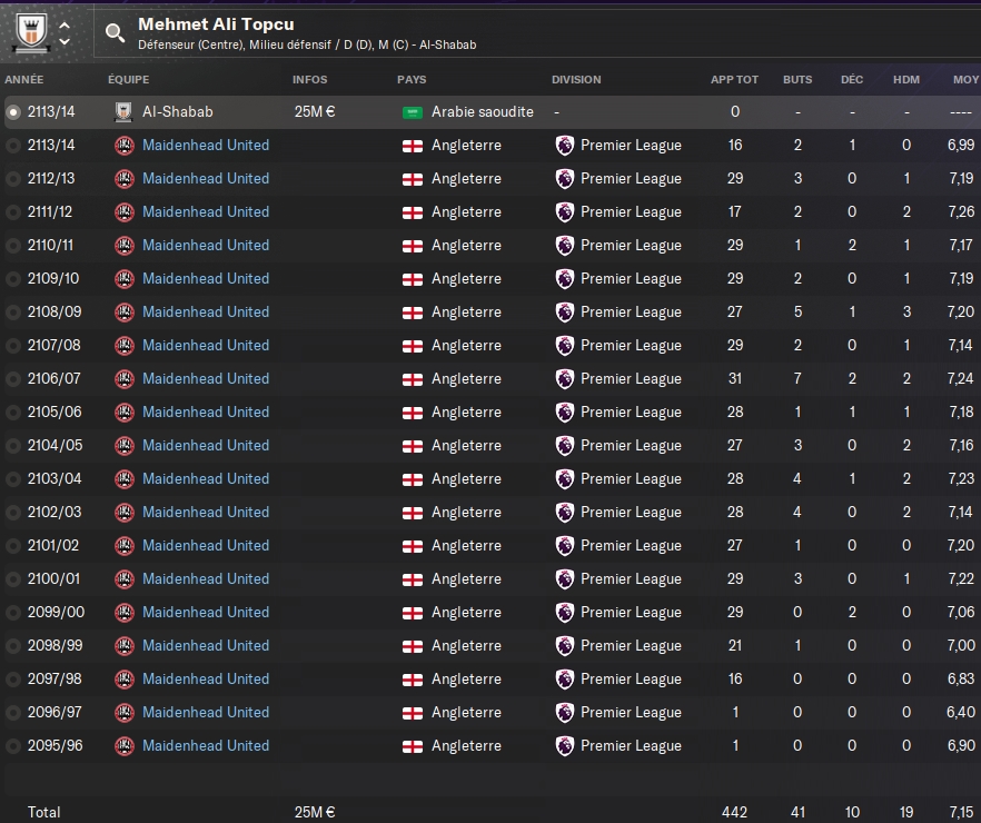 | Matchs joués | 2927 | Buts marqués | 6079 | Titres championnat | 22 |