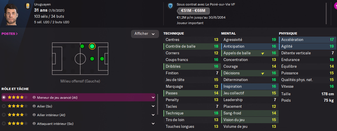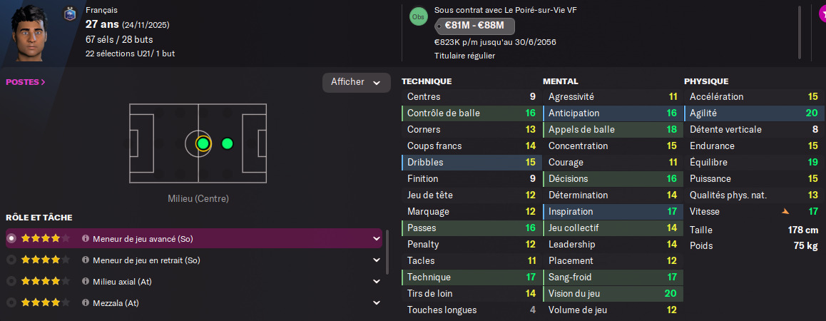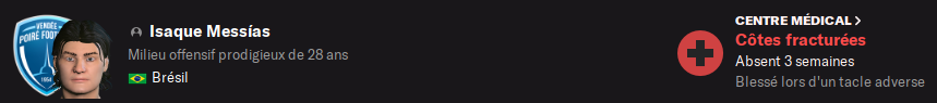 Acheté en 2045, il passe 5 ans hors du club avant de revenir depuis 3 saisons et jouer une quinzaine de matchs de L1 par saison.