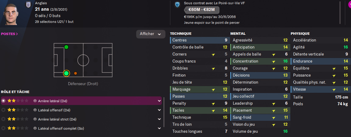 Il peut dĂ©panner sur lâaile droite mais sur un match dĂ©cisif, il passerait derriĂšre NOEL et serait probablement mon 5Ăšme choix au milieu.