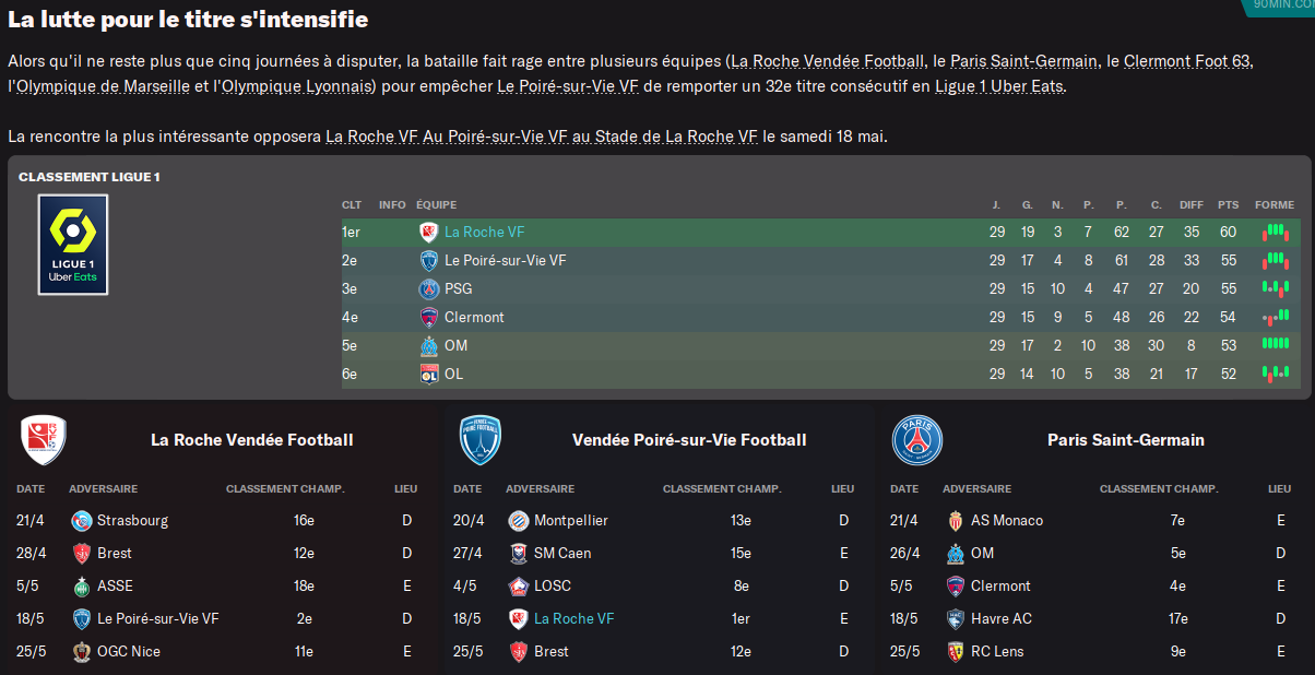 Avec notre belle série de victoire, on recolle au PSG avec une légÚre avance sur nos poursuivants.