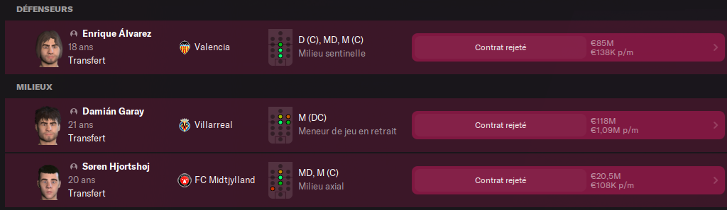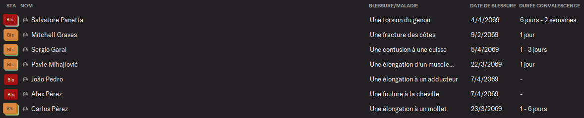 3 titulaires sur la touche et plusieurs remplaçants sur ces mĂȘmes postes.