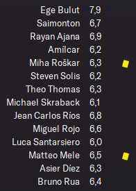 SOLIS, joueur star, nâa pas pesĂ©. Il a perdu un quart des ses ballons touchĂ©s.
