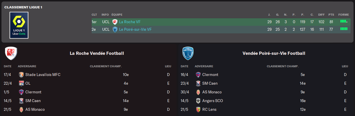 Le Poiré se retrouve déjà à la traine par rapport aux équipes invaincues mais on sait trÚs bien que la lutte sur la durée devrait se jouer face à La Roche VF.