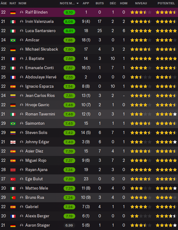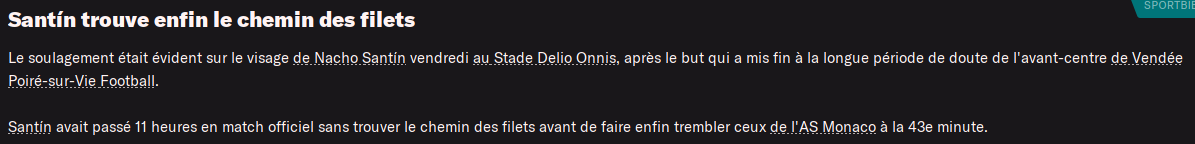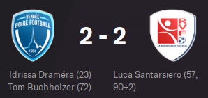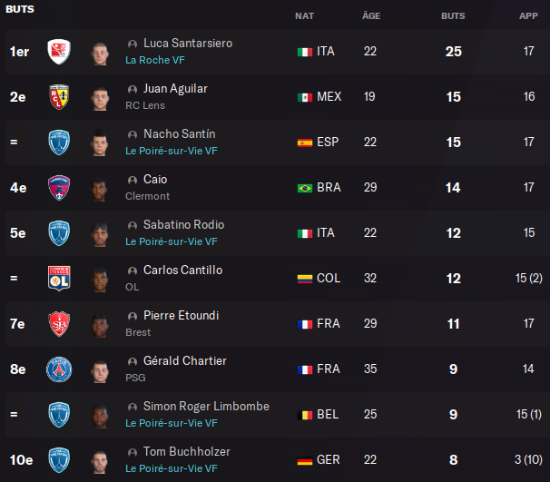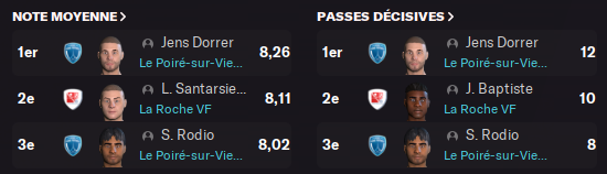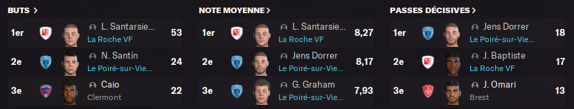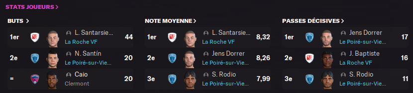 La Roche VF surfe sur la forme de SANTARSIERO qui pointe déjà à 5 buts en 3 matchs et BAPTISTE auteur de 4 passes décisives en 3 matchs.
