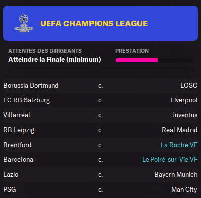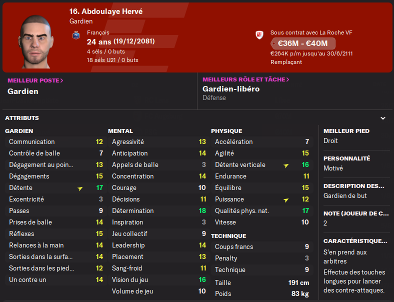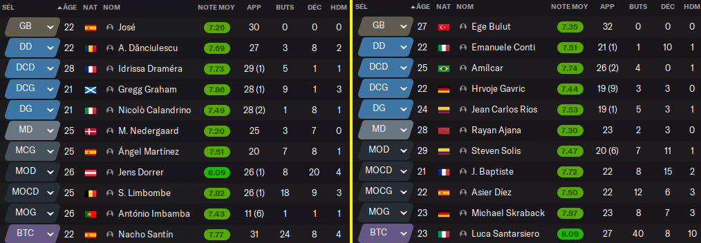 CONTI titulaire du coté de La Roche. ROSKAR est sur le départ.
