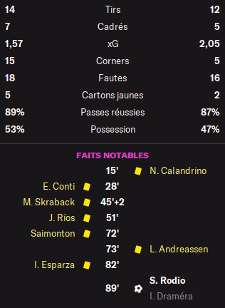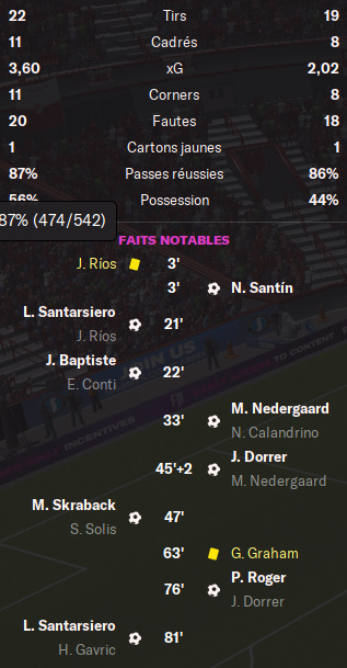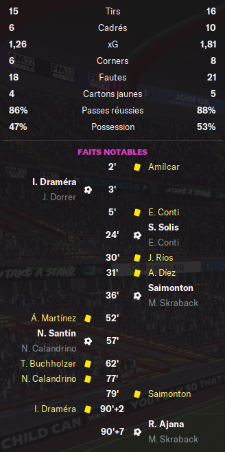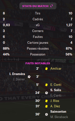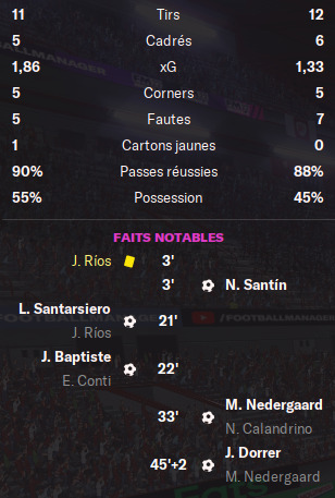 La rencontre est plutĂŽt plaisante et Ă©quilibrĂ©e et câest en fin de match que la dĂ©cision se fait sur corner.