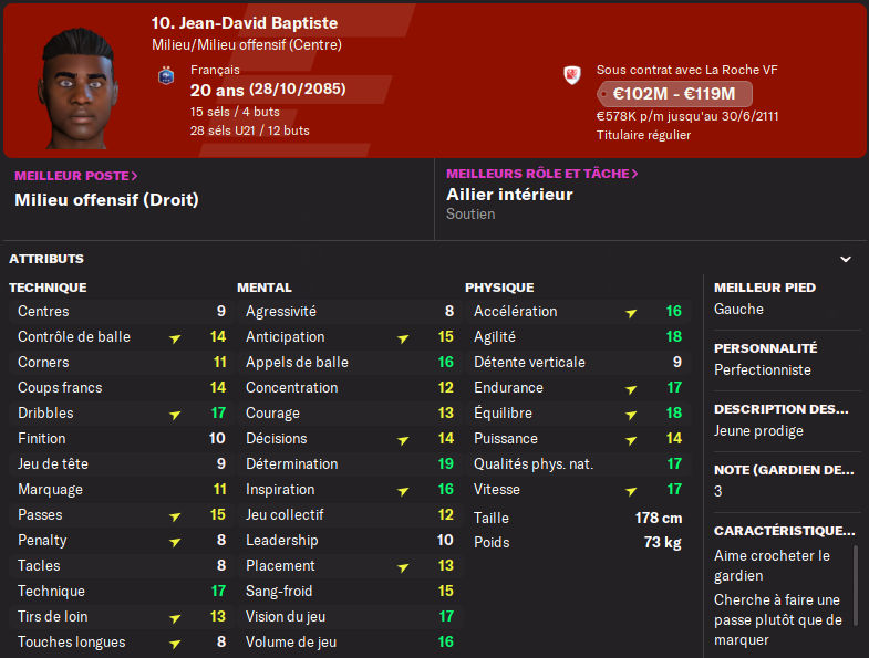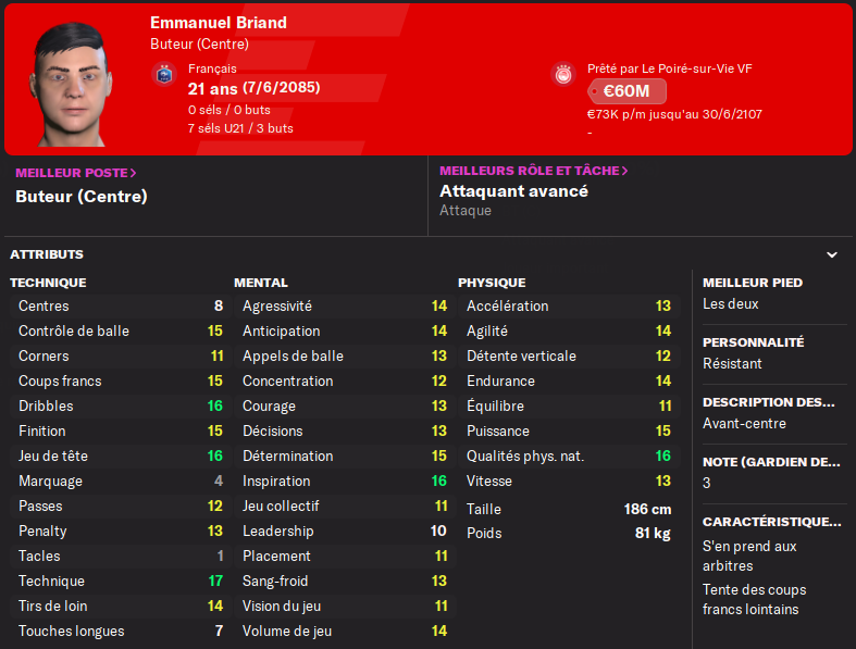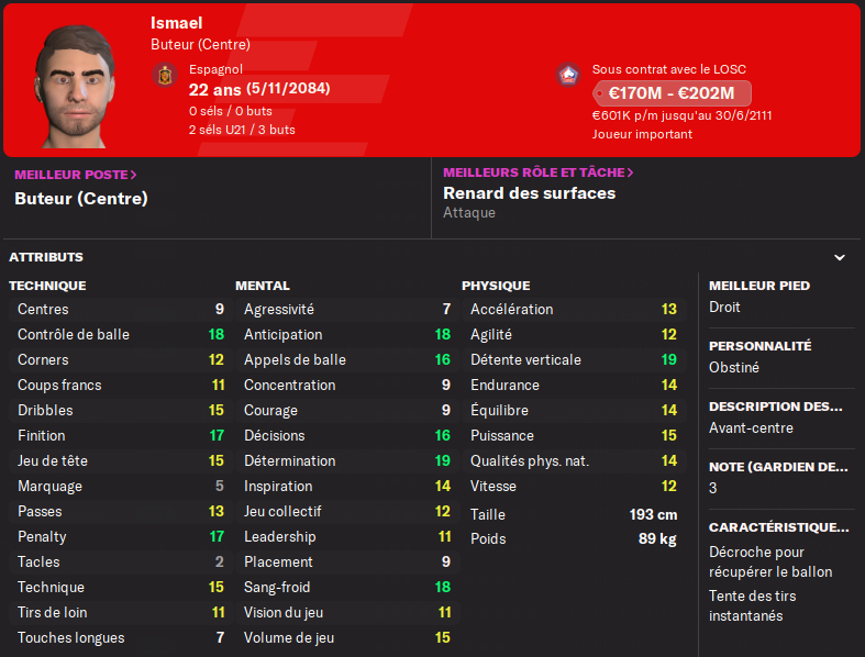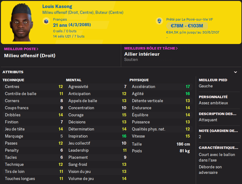 Mais il doit sâamĂ©liorer et devenir plus dĂ©cisif, ses 2 petits buts et 4 passes dĂ©cisives sont maigres en 25 matchs de L1.