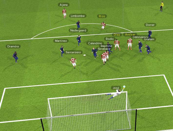 MARTINEZ tire au premier poteau pour DRAMERA qui dĂ©vie de la tĂȘte.