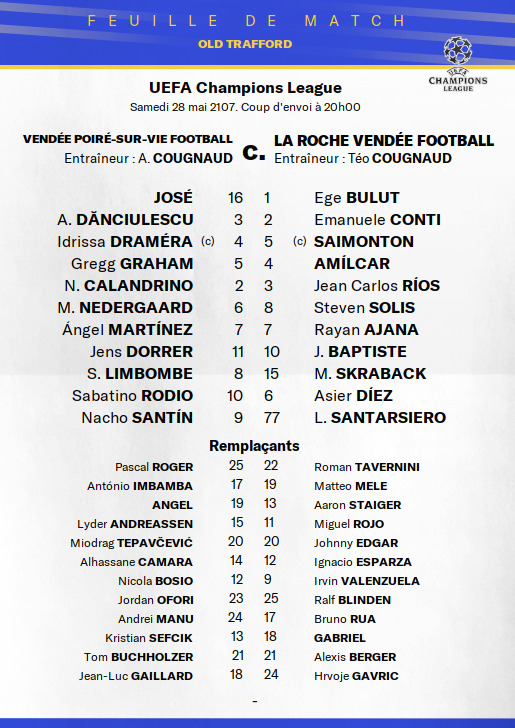 DANCIULESCU suspendu, câest Pascal ROGER qui est titulaire au poste dâarriĂšre gauche.