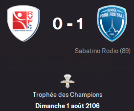 RODIO est au bout dâune combinaison bien rĂ©alisĂ©e pour offrir le TrophĂ©e des Champions au PoirĂ© VF pour sa premiĂšre apparition sous ses nouvelles couleurs.