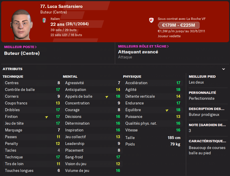 Auteur de 16 buts en 20 matchs de championnat, on est également sur une année charniÚre pour lui. Le potentiel semble en dessous des joueurs déjà en place.