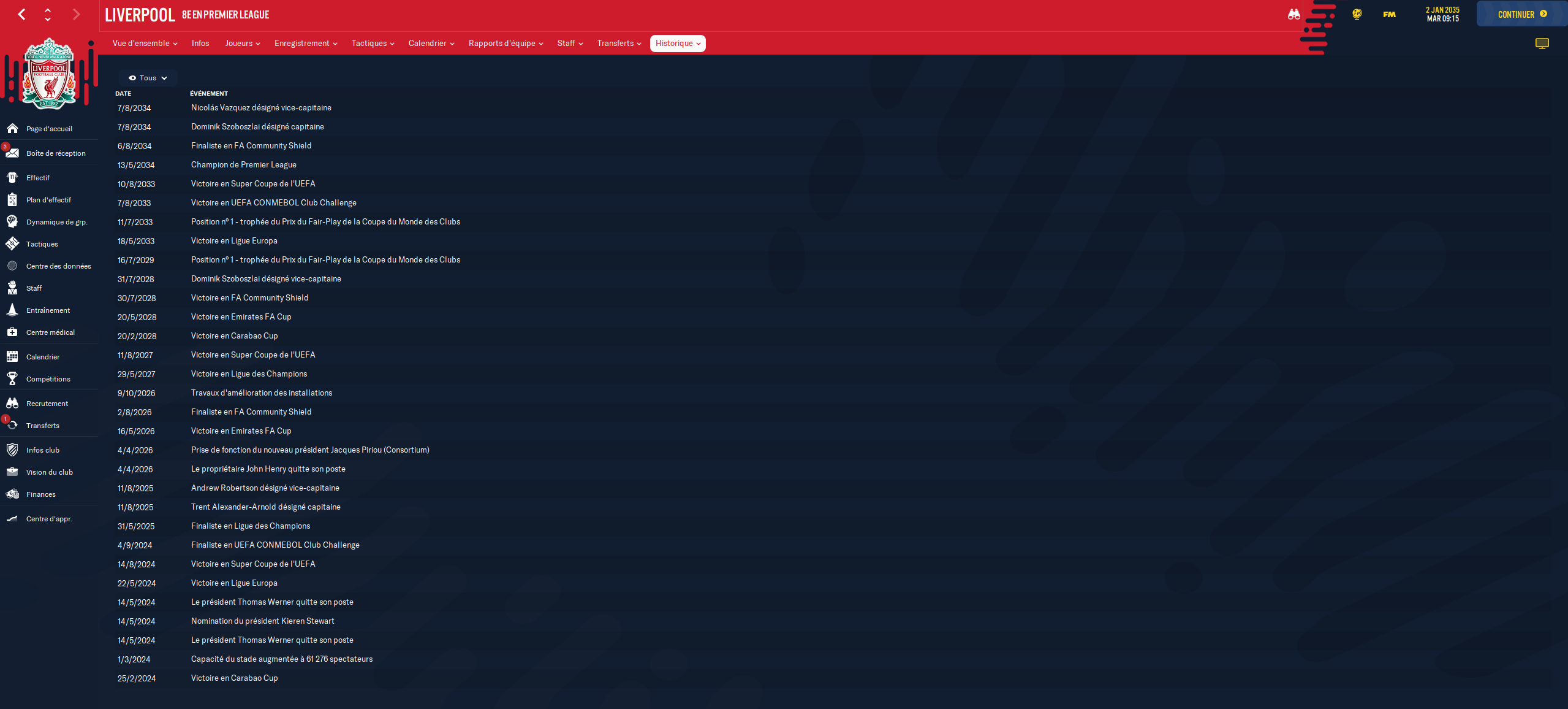 A force de refaire ton effectif de fond en comble tout les deux jours ça ![]()