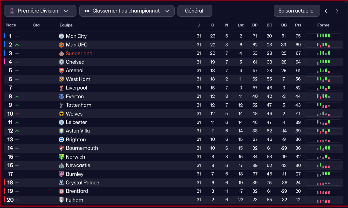 Les deux Manchester ne sont pas si loin que ça. Une bonne sĂ©rie et tu peux prendre lâavantage. Mais dâabord, on se concentre sur cette finale de Carabao Cup ![]()