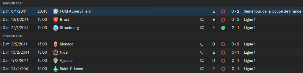 . La suite est moins drole avec 4 défaites de suite, mais on se rattrapera avec notamment un un match dantesque contre Ajaccio