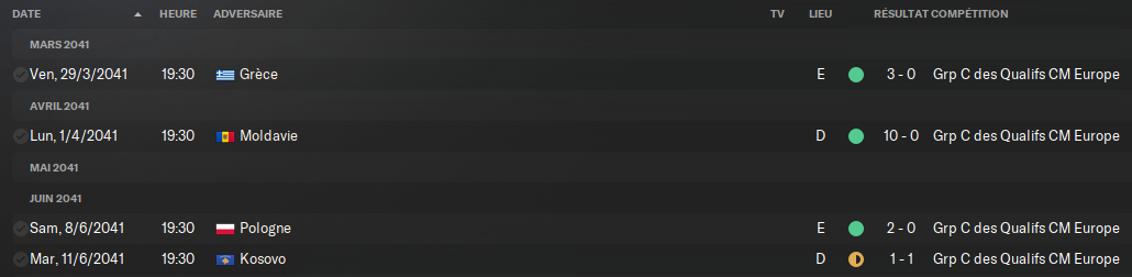 La reconstruction de lâEquipe de France se passe bien, en qualifications pour la Coupe du Monde sâest quasiment parfait a part le match nul contre la surprenante Kosovo deuxiĂšme du groupe.