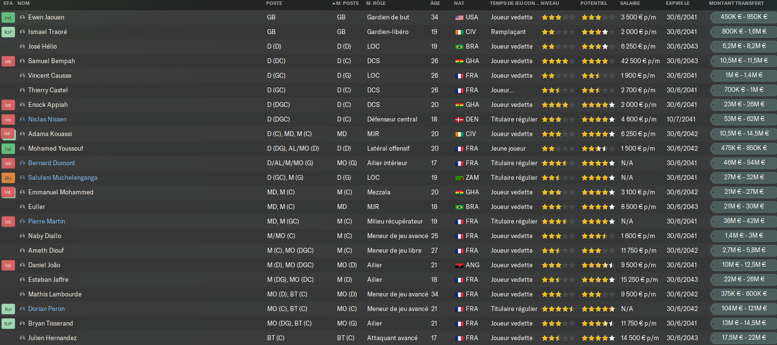 Le mercato est parti Ă une belle vitesse et avec nos 5 millions de budgets de transferts on a fait des affaires. Dans un premier temps, plusieurs joueurs en prĂȘt rejoignent le projet dont un certain Dorian Peron