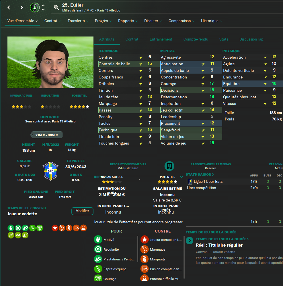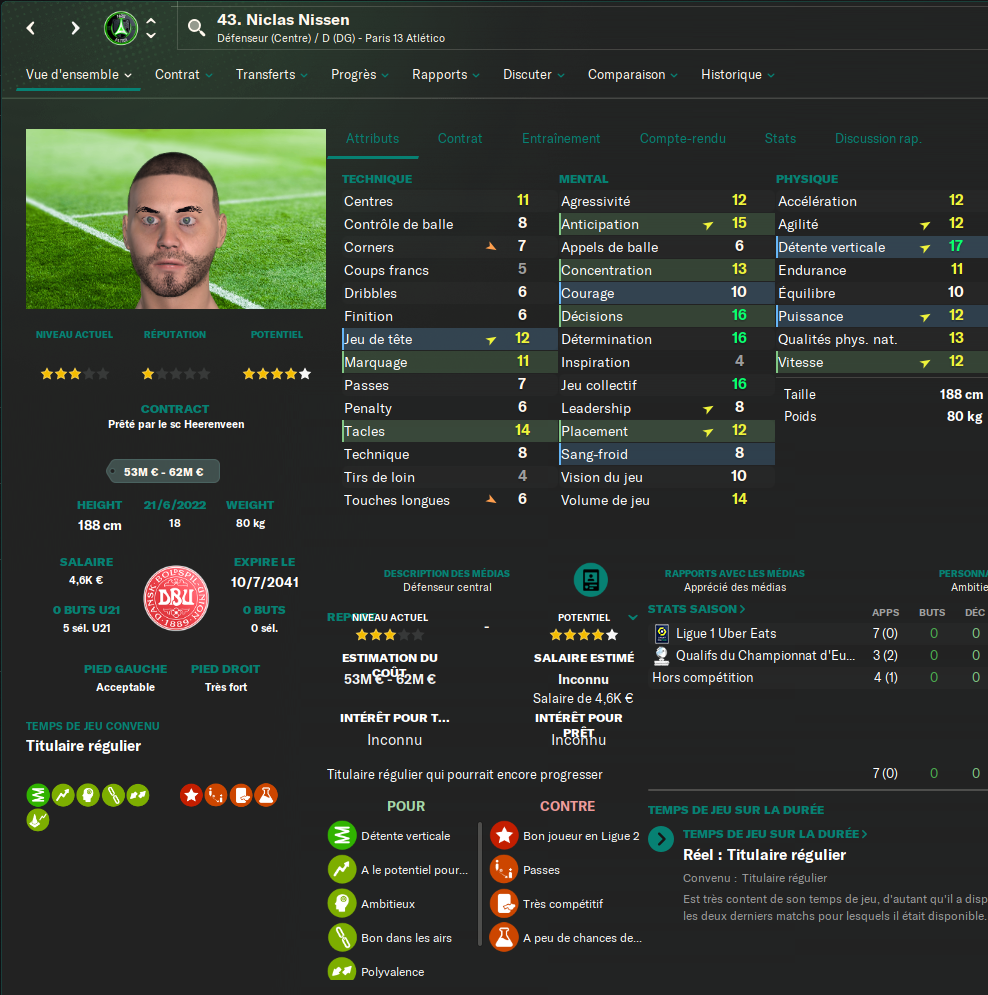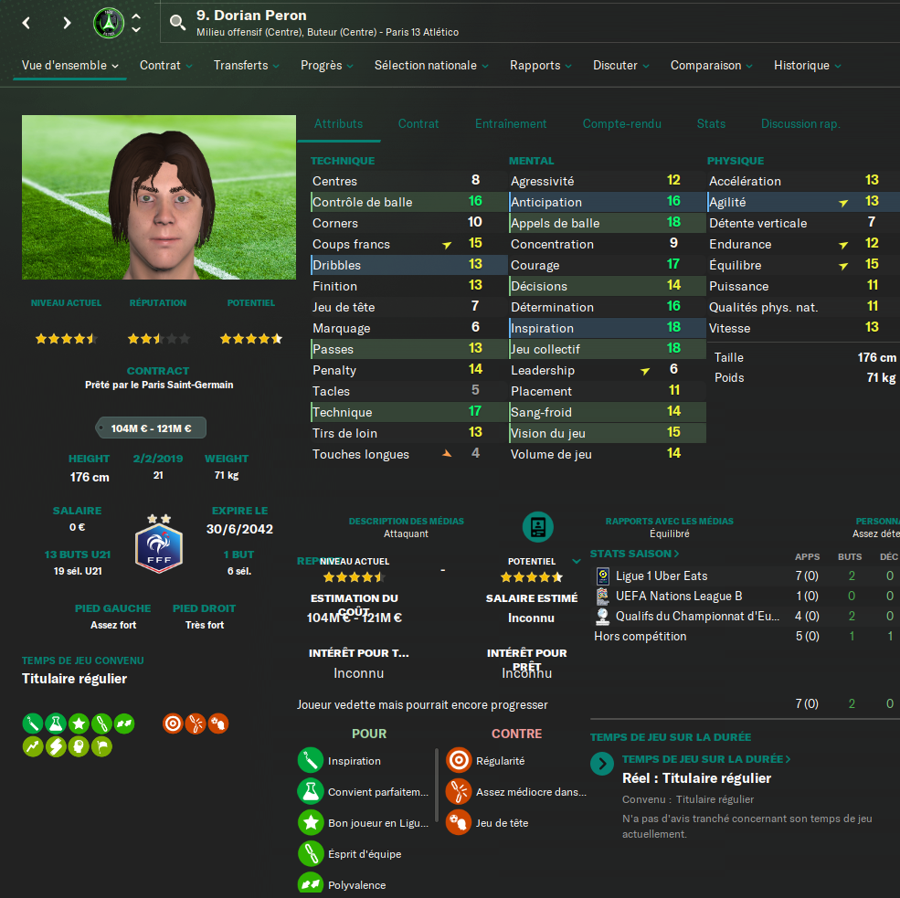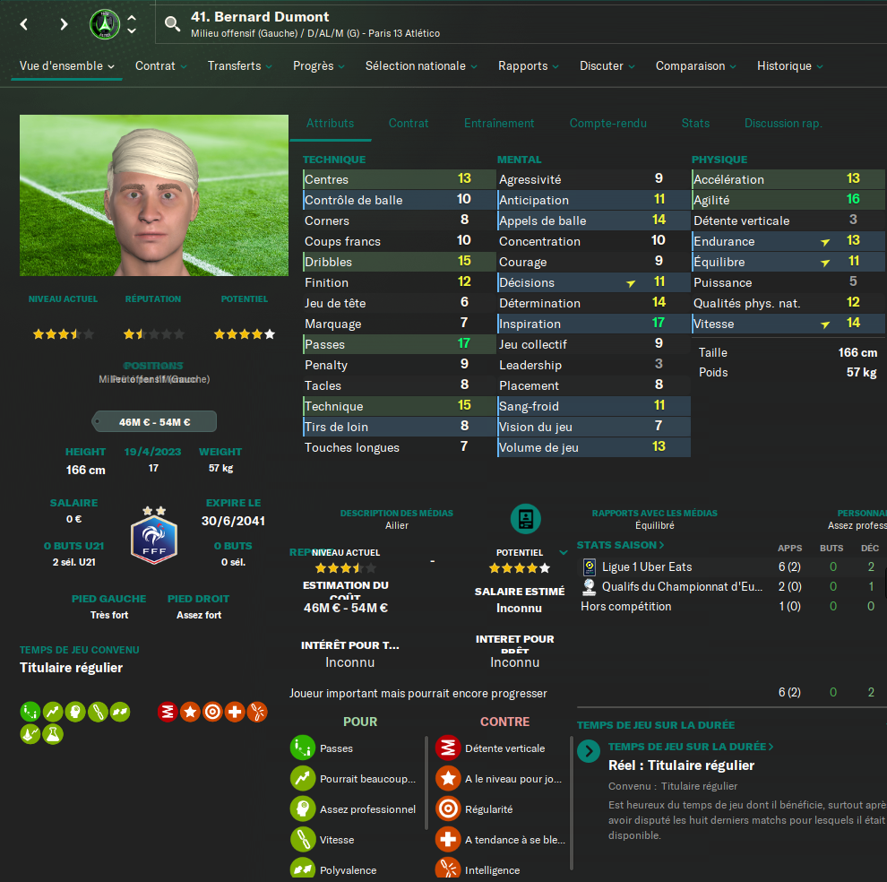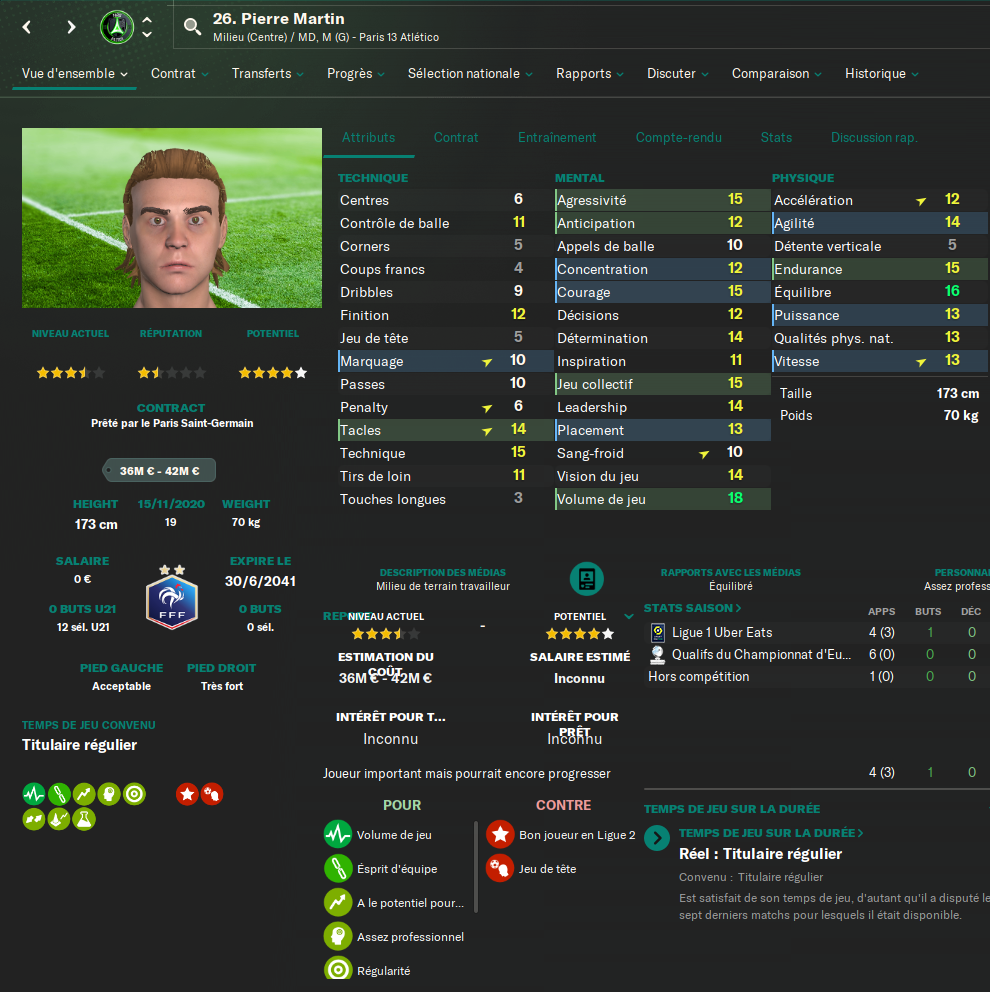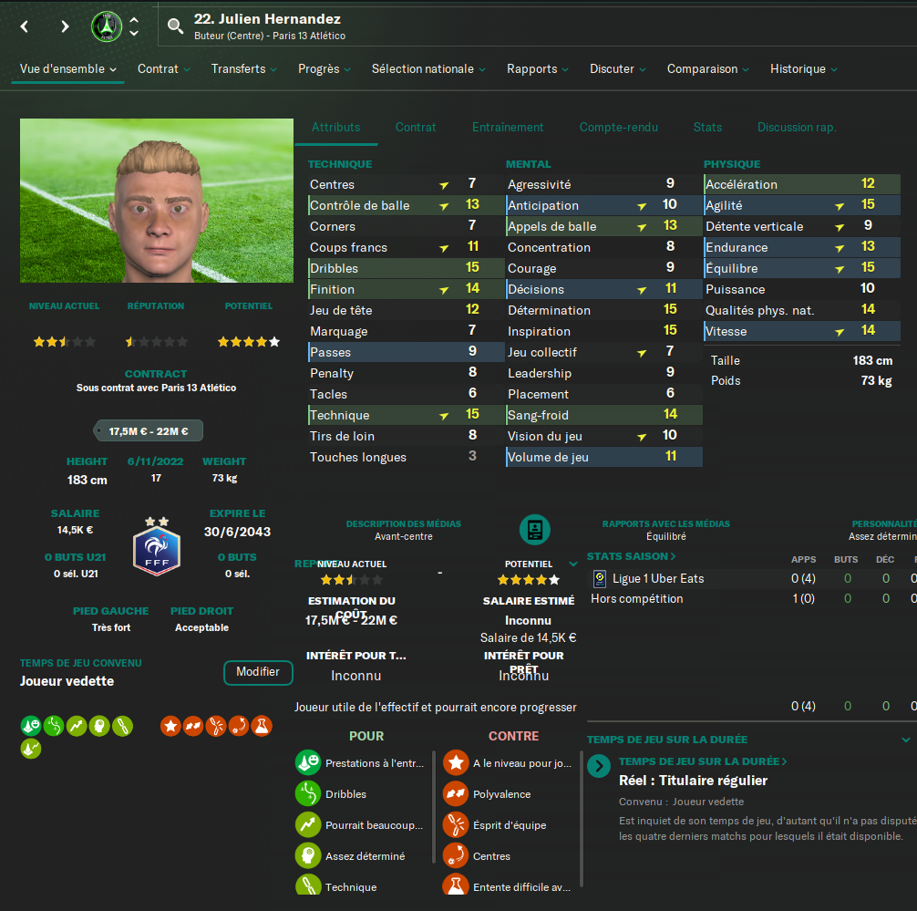 Saison 17 dont ma sixiĂšme ici Ă Paris oĂč lâon rentre dans la cours des grands. On est officiellement le second club parisien au niveau national. La Ligue 1 ça risque dâĂȘtre difficile mais je compte sur mes recruteurs pour me trouvĂ© des petites pĂ©pites. En terme dâinfrastructures, on amĂ©liorer nos structures de formation, concernant le nouveau Stade, qui remplacera un ancien quartier hlm dĂ©truit sera prĂȘt seulement le 21 Juin 2042 sâil nây a pas de retard.