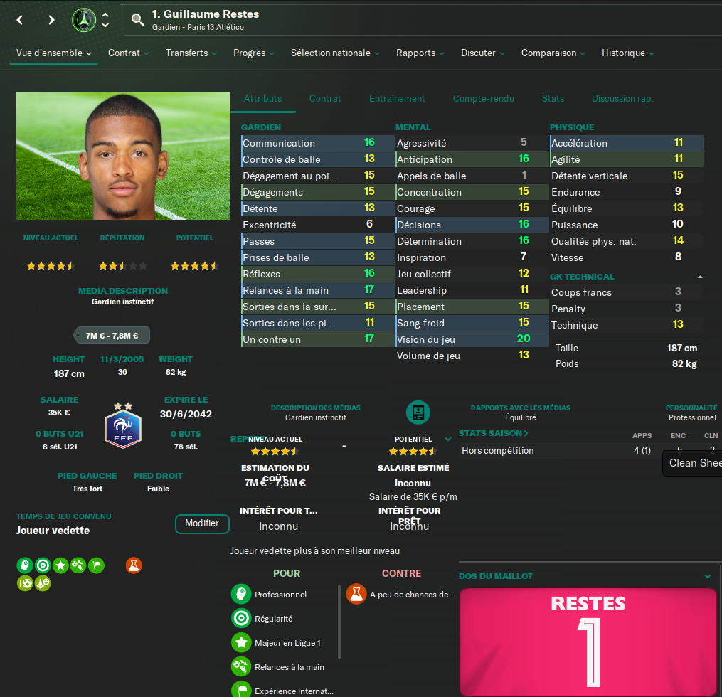 il partira en tant que premier gardien, lui qui Ă©tait que en Ă©quipe 2 avec les canaris. Son remplaçant est lâinternational français Guillaume Restes