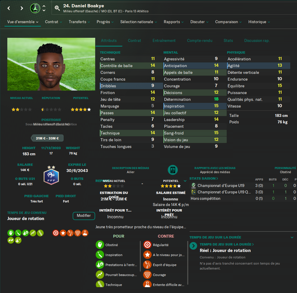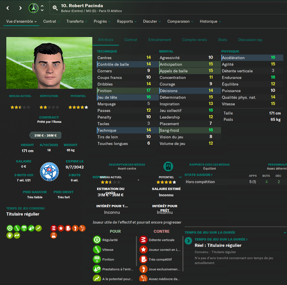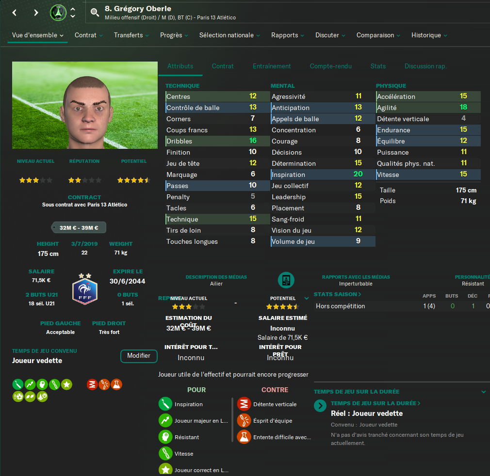 Un peu plus tard dans la saison, on va accueillir en prĂȘt la nouvelle star du footbal français, un monstre peut etre plus fort quâun certain MbappĂ©. Pas titulaire dans son club, et pourtant je nâai rarement vu ça dans le football un tel talent (ni dans fm dâailleurs), Monsieur Thomas Frey