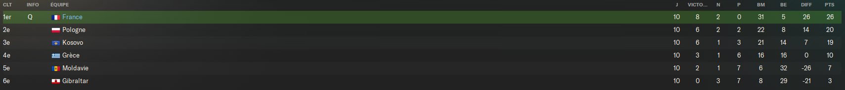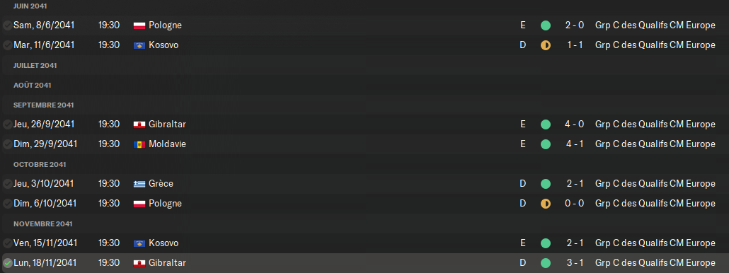 Avec la sélection nationale, on passe tranquillement les matches les uns aprÚs les autres sans trop forcer, on se qualifie pour la Coupe du monde 2042 qui se disputera en Espagne. A noté que le Kosovo termine surprenant troisiÚmes.