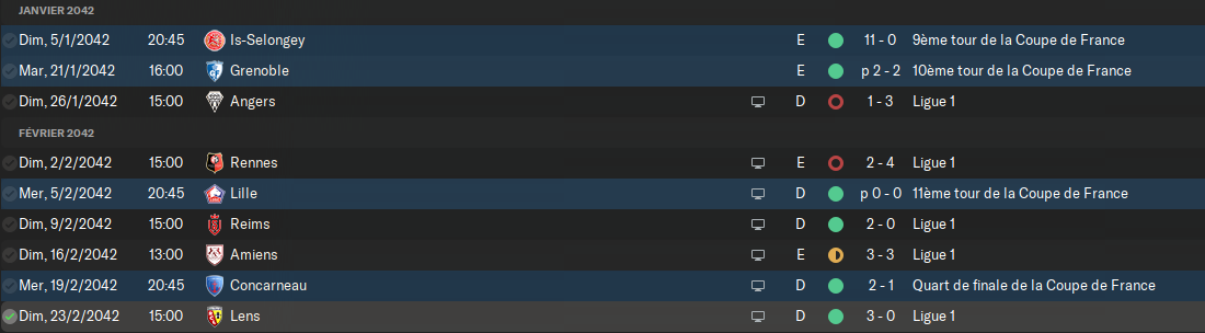 La trÚve hivernale nous a fait énormément de bien avec la reprise de la Coupe de France et ce score large contre Selongey (11-0), ensuite les victoires aux tirs aux buts contre Grenoble