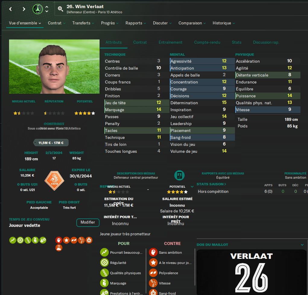 pour 2.7 millions dâeuros il est lâavenir de ma dĂ©fense centrale. Un autre prodige arrive Wim Verlaat
